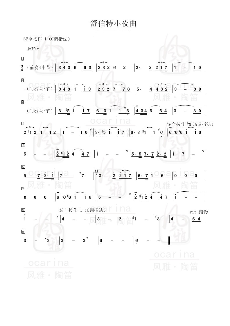 【舒伯特小夜曲】曲譜