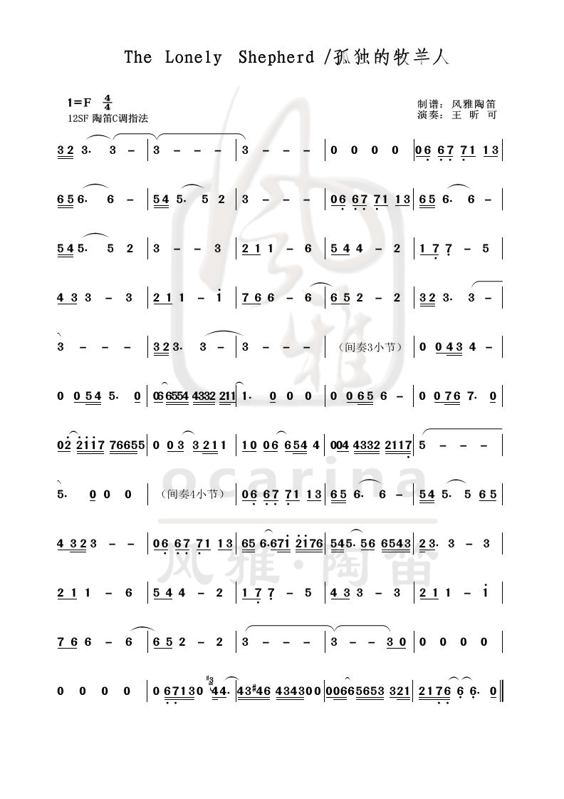 《The Lonely Shepherd孤獨的牧羊人》曲譜