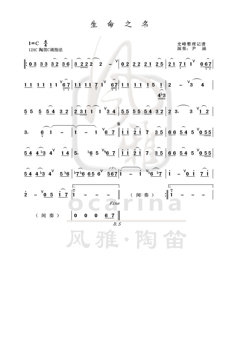 《生命之名》曲譜