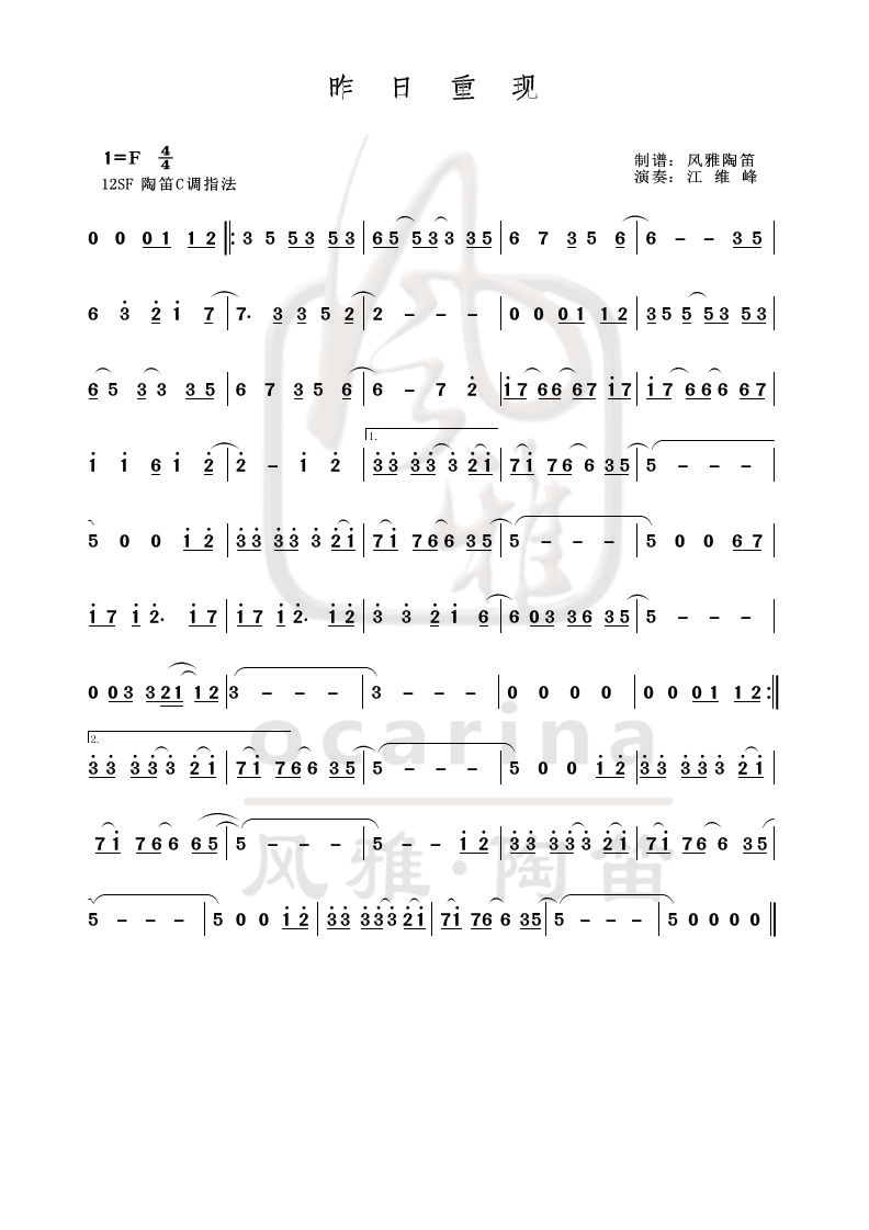 《昨日重現(xiàn)》曲譜