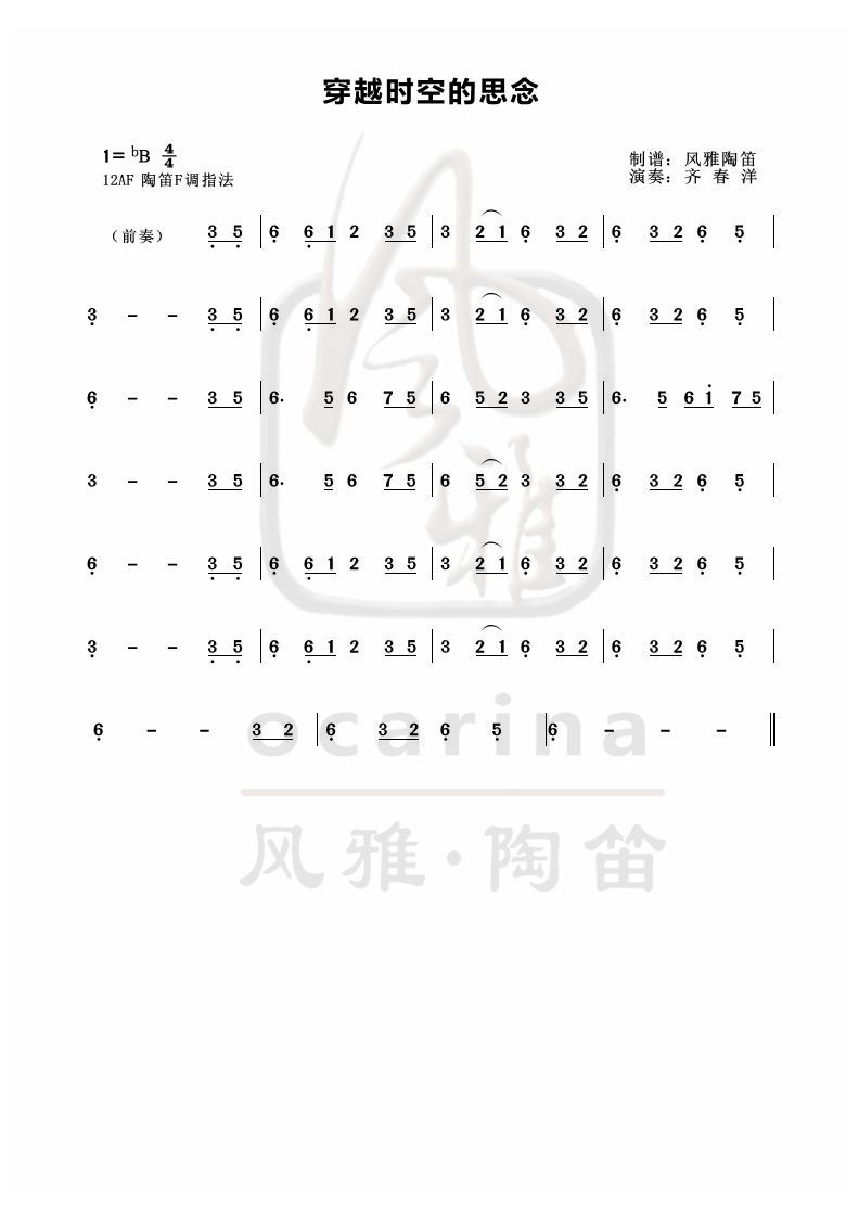 《穿越時空的思念》曲譜
