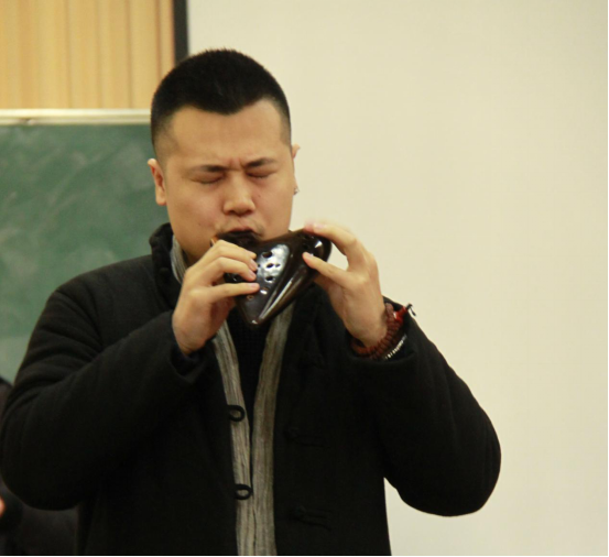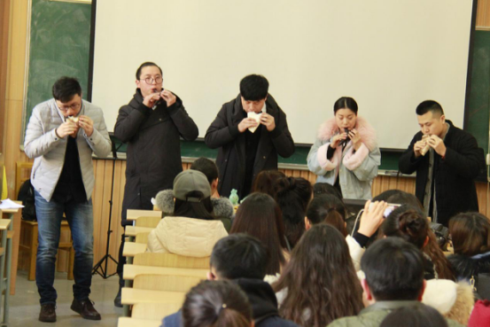 課堂的第一部分由沈老師向到場的幾十位音樂系專業(yè)學生詳細講解陶笛的歷史并親自進行陶笛吹奏示范!