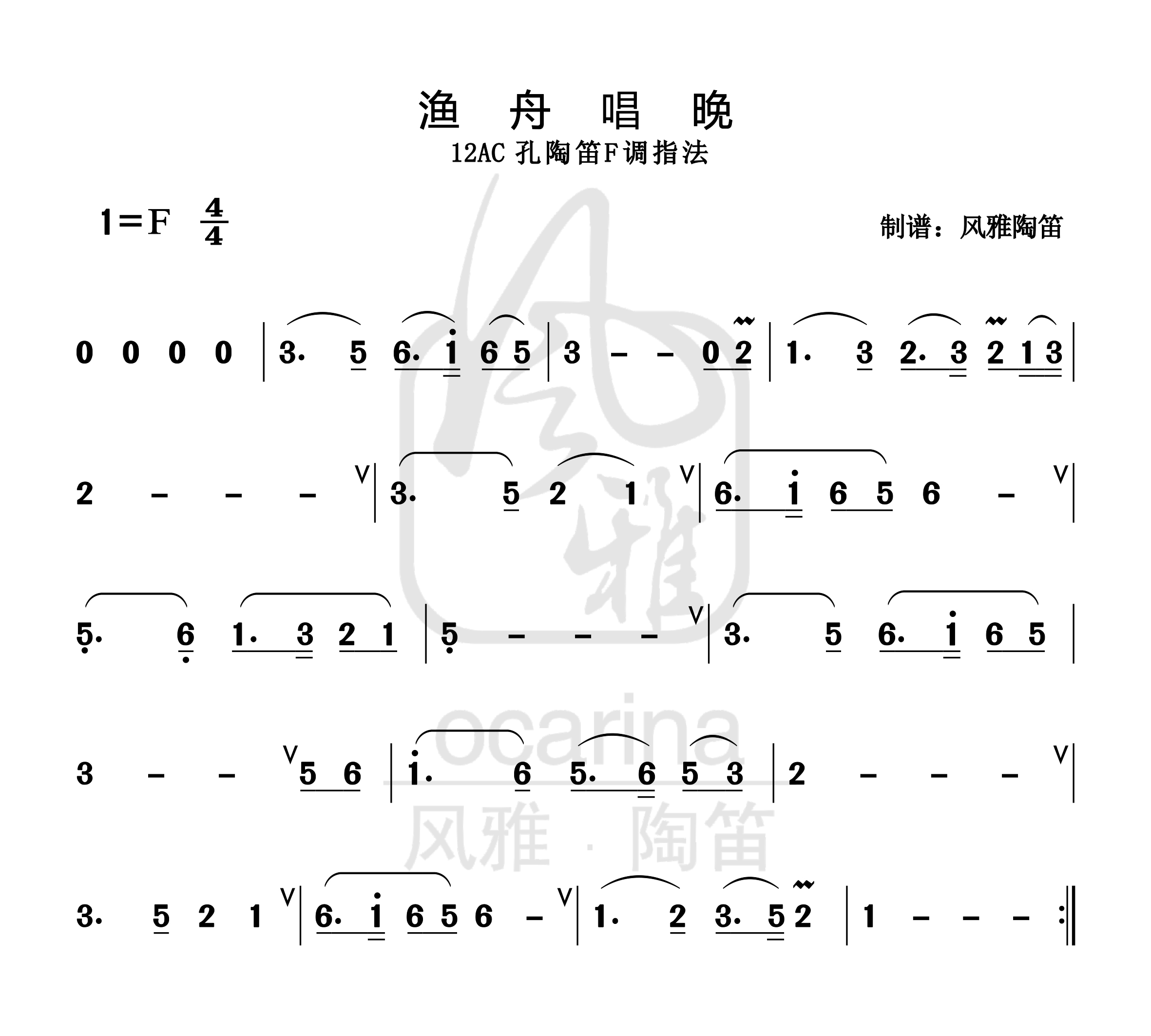 《漁舟唱晚》曲譜