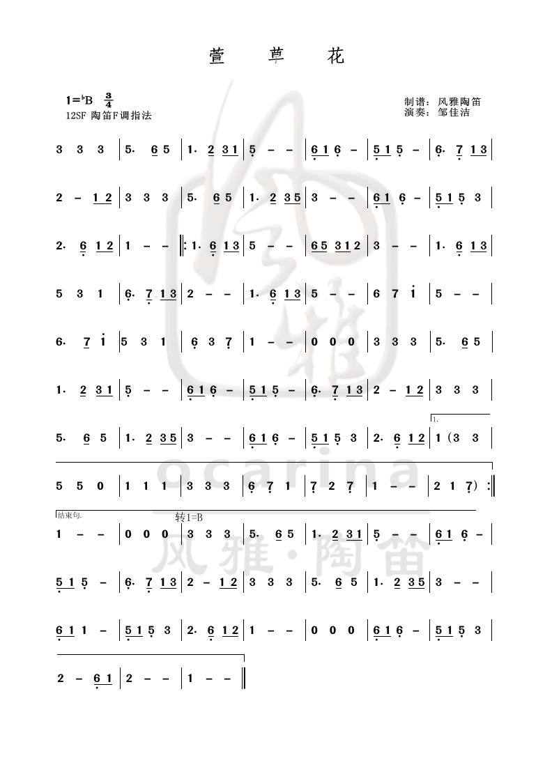 【萱草花】曲譜