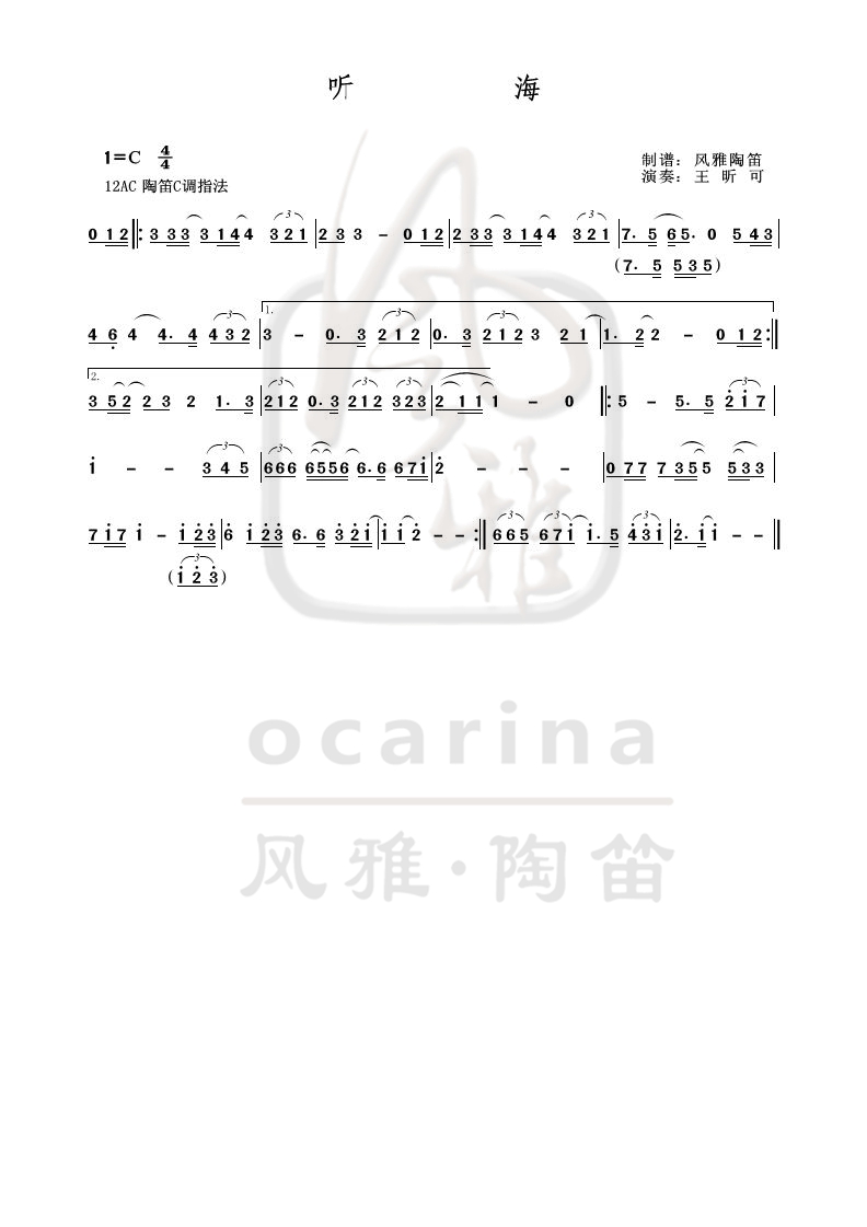 《聽海》曲譜