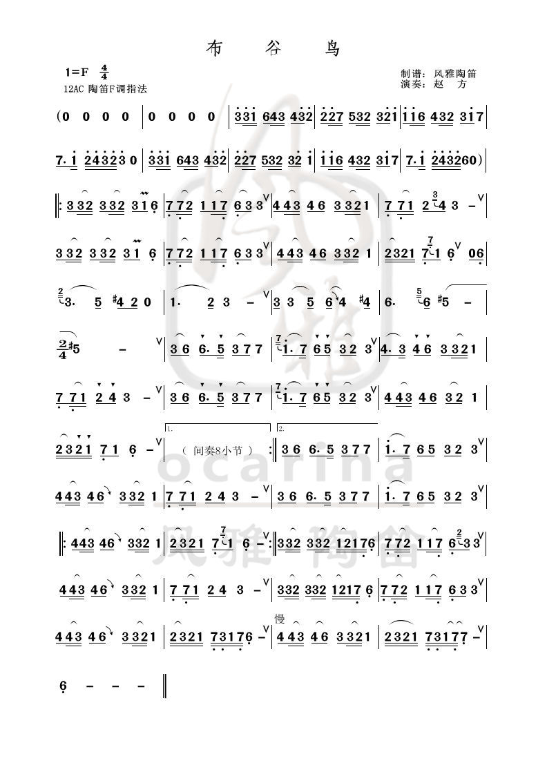 《布谷鳥》曲譜