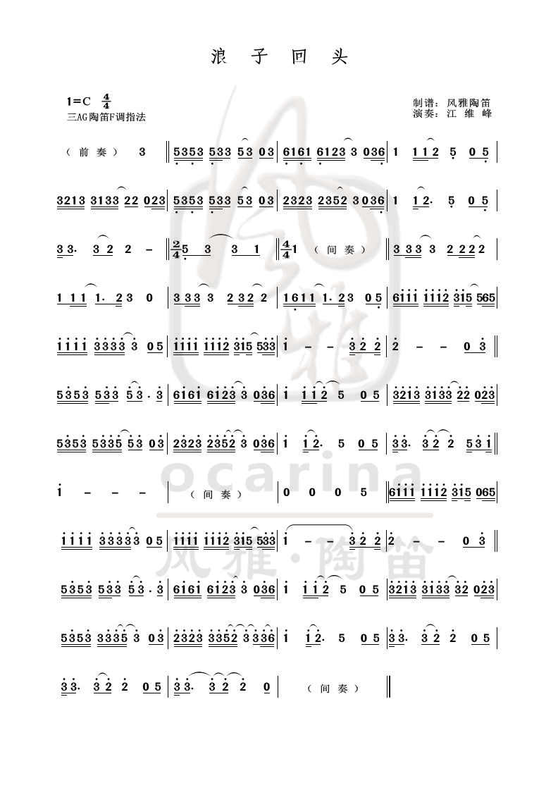 《浪子回頭》曲譜