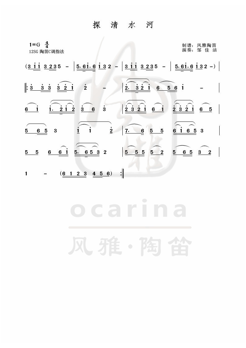 《探清水河》曲譜