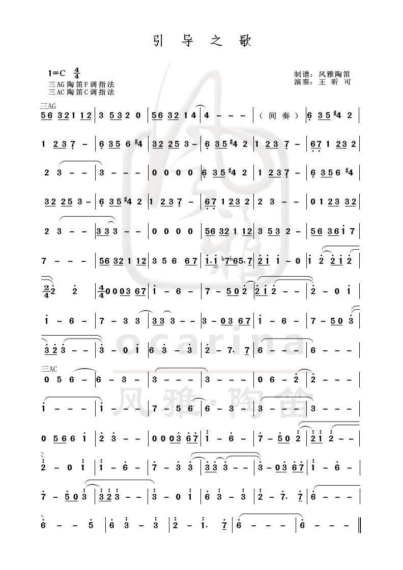 《引導之歌》曲譜