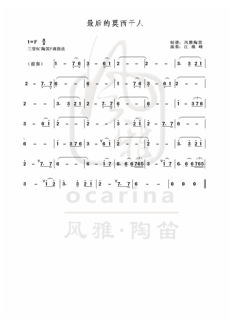 《最后的莫西干人》曲譜