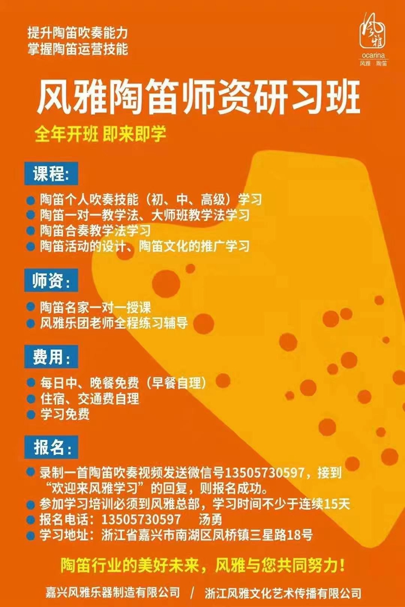 熱烈慶祝建黨百年! 風(fēng)雅陶笛師資研習(xí)班推遲到7月5日正式開班! 集中風(fēng)雅師資力量在這個(gè)暑期帶給你意想不到的收獲! 千萬不要錯(cuò)過!你的夢(mèng)想,我的夢(mèng)想,我們的陶笛夢(mèng)想在此時(shí)筑建! 聯(lián)系:湯勇13505730597(微信同號(hào)),名額有控、限招25人! 注:我們不收你的費(fèi)用,只要你的夢(mèng)想!