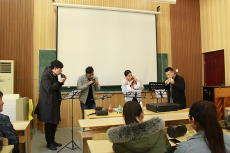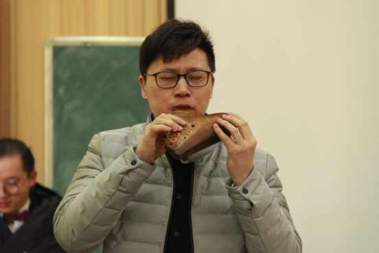 課堂的第一部分由沈老師向到場的幾十位音樂系專業(yè)學生詳細講解陶笛的歷史并親自進行陶笛吹奏示范!