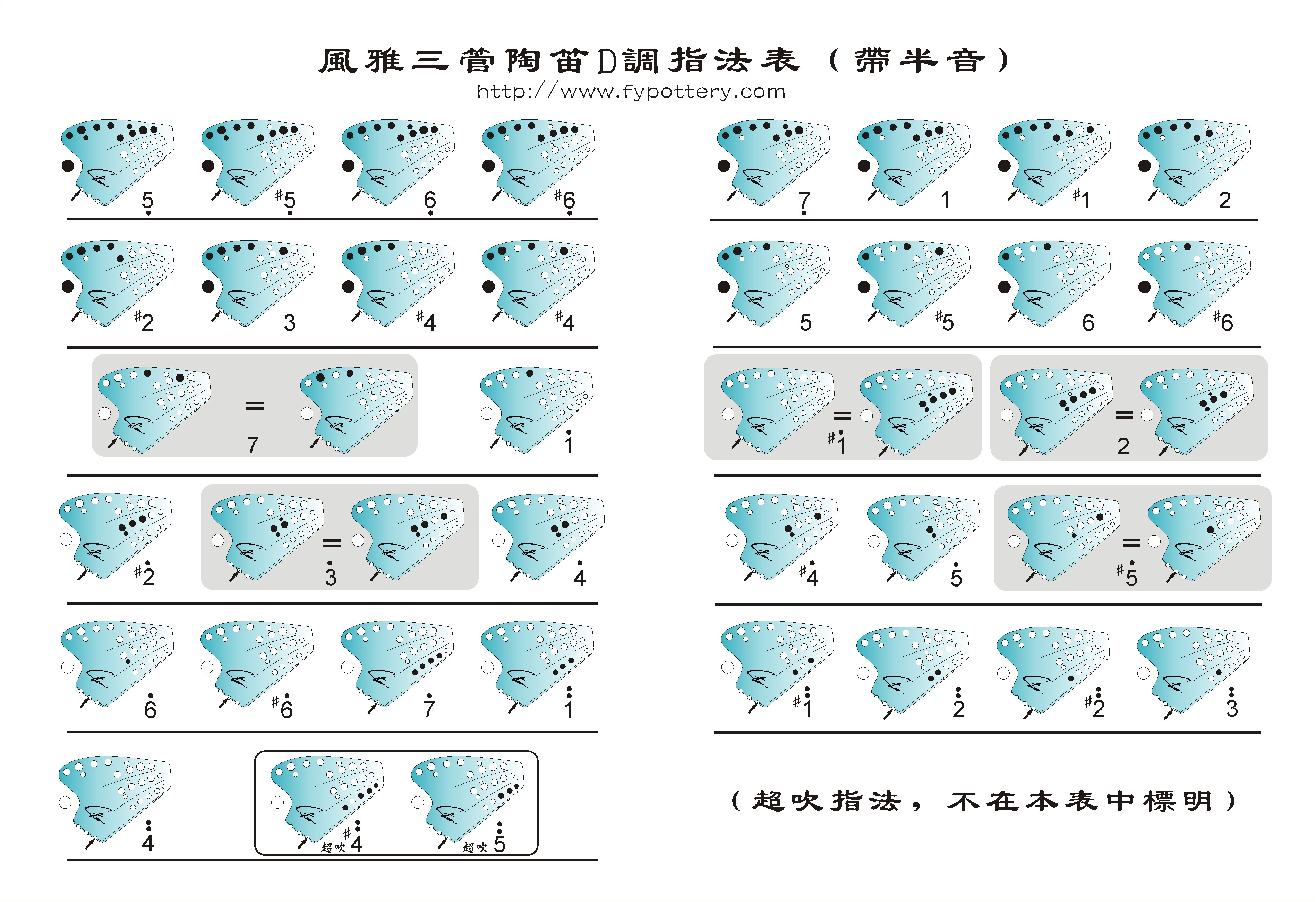 風(fēng)雅三管陶笛D調(diào)指法表(帶半音)